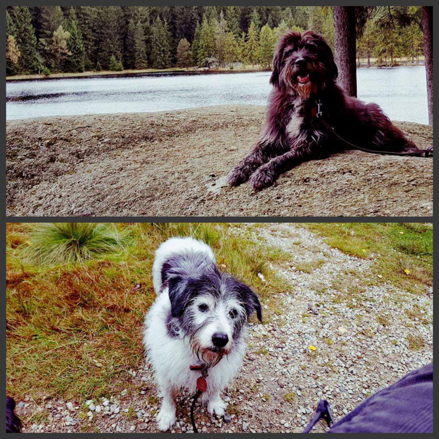 Den See kann man sehr gut auf den Wanderwegen umrunden, an vielen Stellen bieten sich besonders außerhalb der Saison Möglichkeiten, die Hunde ins Wasser zu lassen, was Momo und Tapsi auch in vollen Zügen genossen. Die wollten gar nicht mehr aus dem kalten Nass heraus.