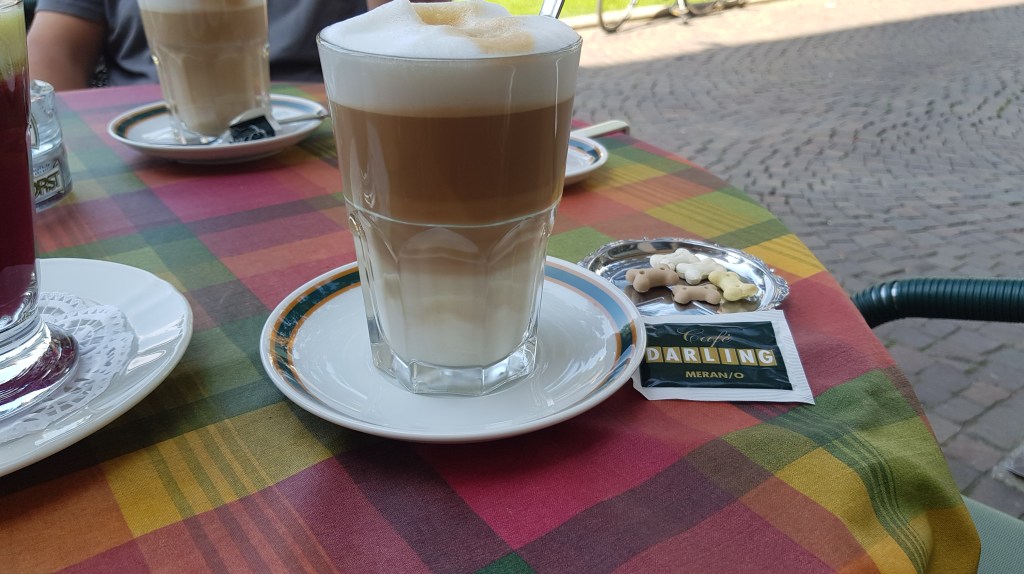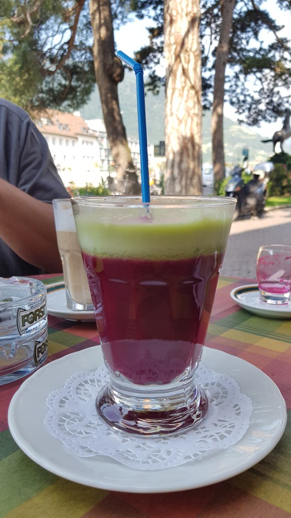 Was im Burggrafenamt natürlich dazugehört, ist der obligatorische Besuch Merans und der Latte Macchiato in Begleitung eines leckeren frischgepressten Saftes im Café Darling. Hier sitzen und den verschiedenen Menschen zusehen, wie sie ihren Weg über die Passerpromenade gehen…Ewigkeiten, stundenlang. Danach ein Bummel durch Meran, ganz früh am Morgen, wenn die Geschäfte gerade erst öffnen und noch nicht viele Menschen den Ort besuchen – wunderbar.