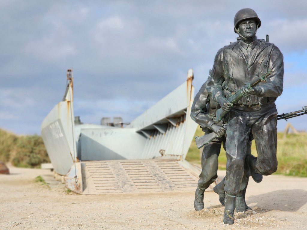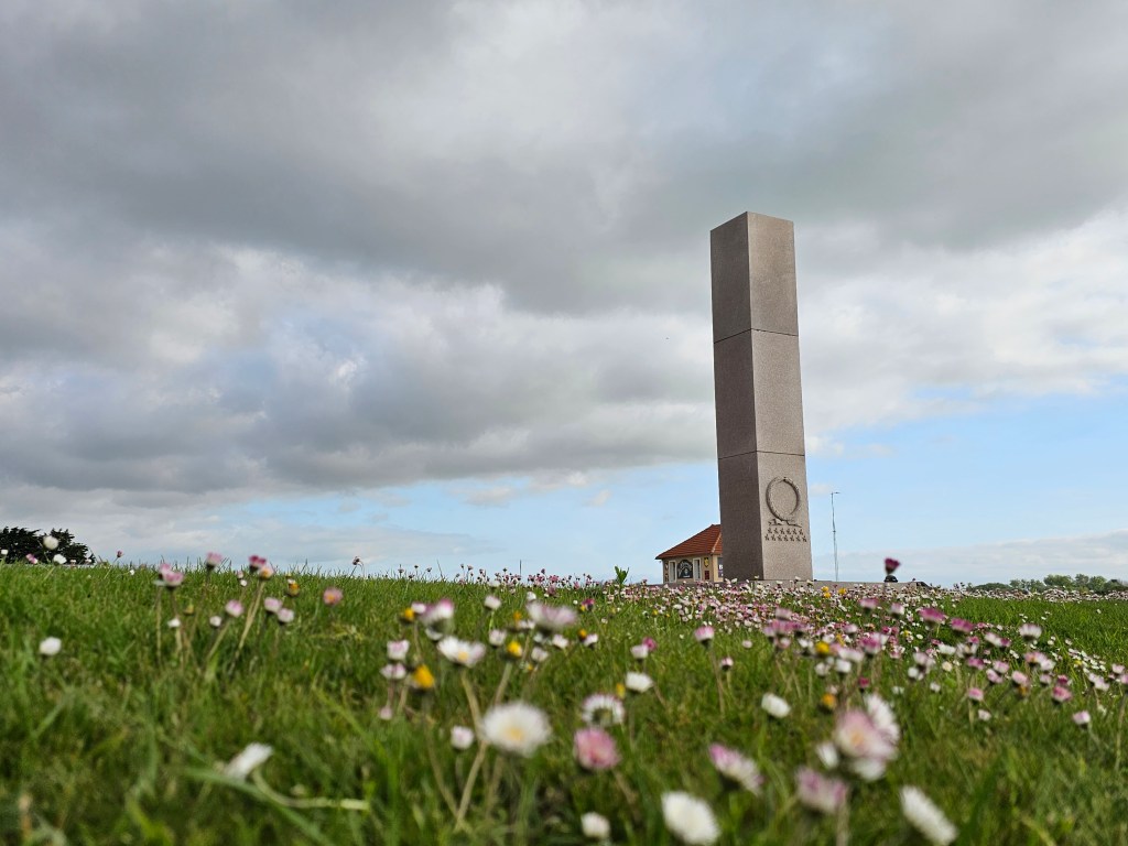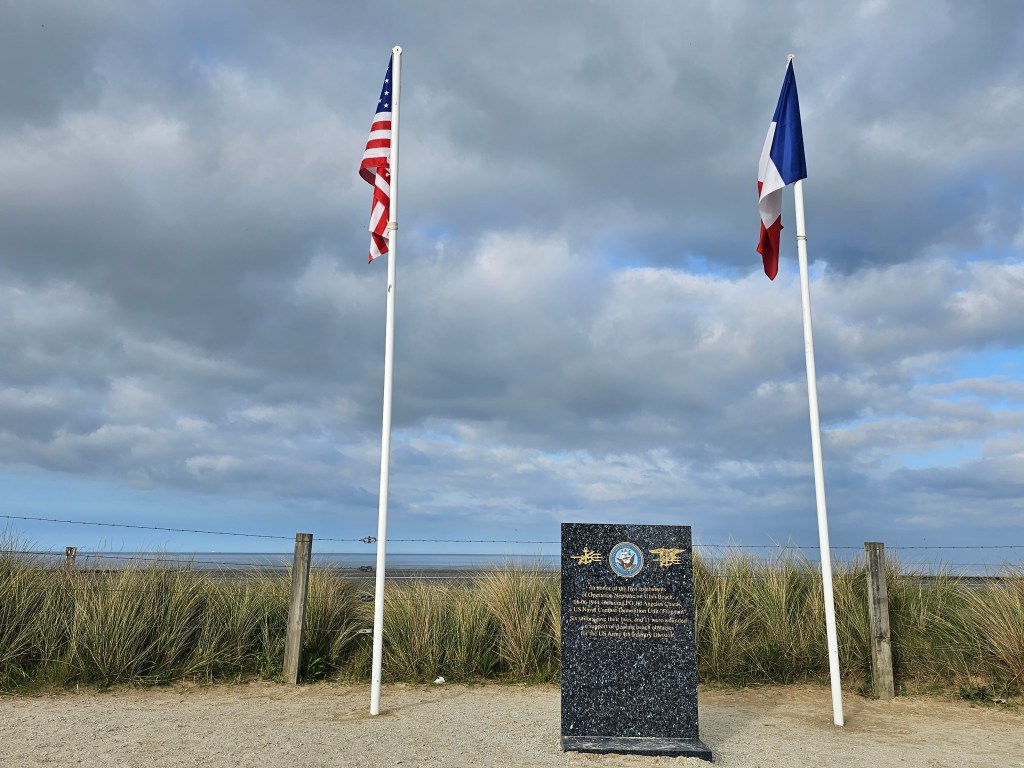 In Utah Beach liegt der Stellplatz nahe beim Strand, gegenüber eines geschichtenerzählenden Friedhofs und direkt am Rande eines Campingplatzes. Man folgt lediglich einer Straße über den Campingplatz und schon kann man den weichen Sand unter seinen Füßen spüren und die über Austernbänke anrollenden Wellen betrachten. Auch das Landungsmuseum – Utah Beach ist einer der Landungsstrände an denen die Alliierten in den frühen Morgenstunden des 06.Juni 1944 landeten, um Europa zu befreien – liegt in direkter Umgebung und ist zu Fuß gut erreichbar. Wir besichtigten allerdings lediglich die Außenanlagen und genossen ansonsten die endlose Weite des Strandes, die gute Pizza und die entspannte Atmosphäre am Stellplatz. Utah Beach – für uns wie 2018 auch Omaha Beach ein Ort der in aller Deutlichkeit vor Augen führt wie nah Leid und Glück manchmal beeinander liegen. Ein Ort, an dem man fast automatisch den Menschen gedenkt, die ihre Leben ließen im Kampf für die Freiheit, die wir heute leben dürfen. Aber zugleich auch ein Ort, der mit ins heute hineingekommen ist und an dem das Leben seinen Lauf nahm, der nicht in der ewiger Trauer festgehalten ist und im Grauen beim Gedenken an das blutige Sterben der Soldaten. Ein kleines Erlebnis, welches uns das besonders verdeutlichte, war ein Spaziergang zum Landungsmuseum, auf dem wir zur gleichen Zeit das glückliche Jauchzen spielender Kinder vom Strand oder Campingplatz hörten und in die bedrückten Gesichter der Museumsbesucher blickten.