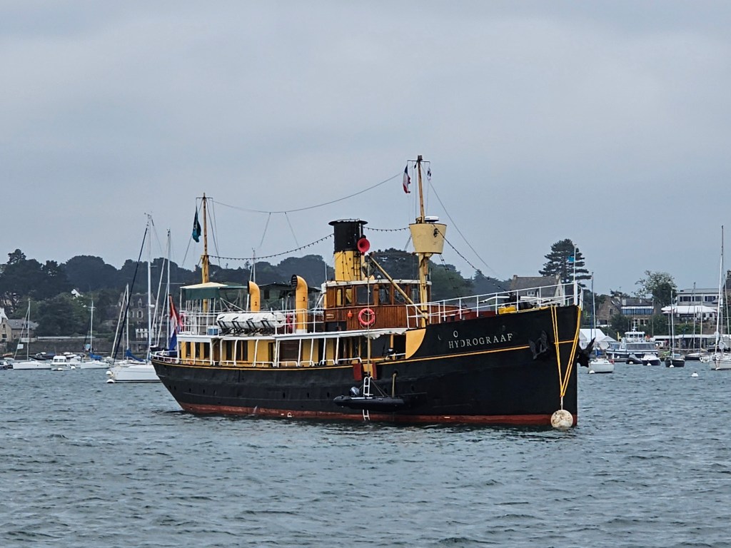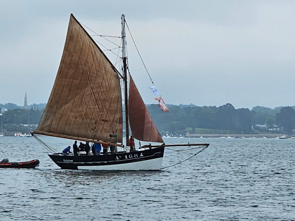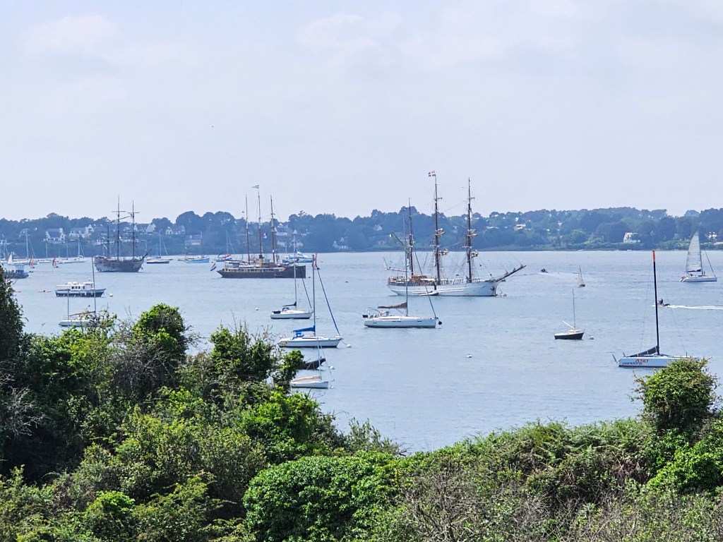 Baden im Golf von Morbihan war unser nächstes Ziel, wo wir endlich von herrlichstem Wetter Willkommen geheißen wurden. Nein, Schmuddelwetter macht uns tatsächlich nicht viel, aber trocken und Sonne, nicht zu warm – das ist uns schon ganz lieb. So ehrlich müssen wir wohl sein. Und es war nicht nur das herrrliche Wetter, welches uns verzauberte. Der Golf ist wundervoll, seine Inseln sind traumhaft und wie überall bislang waren die Menschen, die wir kennenlernten klasse. Der freundliche, respektvolle Umgang miteinander ist wirklich eine Wohltat. Schon auf dem ersten Spaziergang wunderten wir uns über einige riesige, alte Segler, die im Hafen, von denen im Laufe der paar Tage, die wir dort verweilten noch einige einlaufen würden. Wir standen kurz vor dem Beginn der Semaine du Golfe, die alle zwei Jahre stattfindet und einen beeindruckenden Blick auf wundervolle Schiffe bietet.