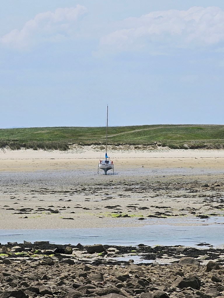 Die nächsten Tage waren der Erkundung der Insel gewidmet, die man auf einem Wanderweg umrunden kann. Auch das Vogelschutzzentrum des LPO mussten wir natürlich besuchen. Die Hunde durften mit hinein. Hier kann man sich auf einer großen Leinwand die Basstölpelkolonie auf einer der anderen Inseln ansehen und sich über die Verschmutzung der Meere auf liebevoll gestalteten Schautafeln schlau machen. Auch werden hier erkrankte oder verletzte Vögel gepäppelt bis sie wieder ausgewildert werden können.