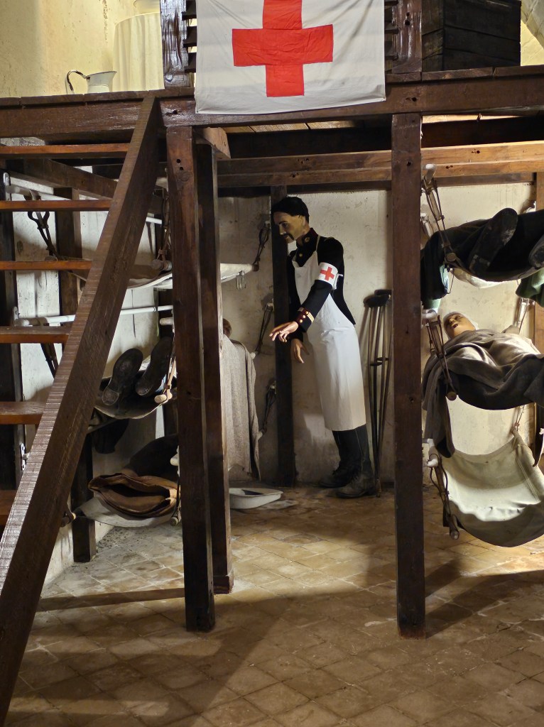 Wir erkundeten noch Büro des leitenden Offiziers, Krankenstation, Sanitärbereich, Offizierszimmer, Taubenschlag, Gefechtsstand, Fernmeldeposten und die Bourges Casematte. Ein nachgestelltes Grab leuchtete aus der Dunkelheit eines engen Ganges. Symbolisch steht es für so viele Menschen, die hier ihr Blut vergossen. Vielleicht sollten Kriege nicht geführt werden durch Soldaten, vielleicht sollten jene die sie anzetteln auch die Personen sein, die sie ausfechten.