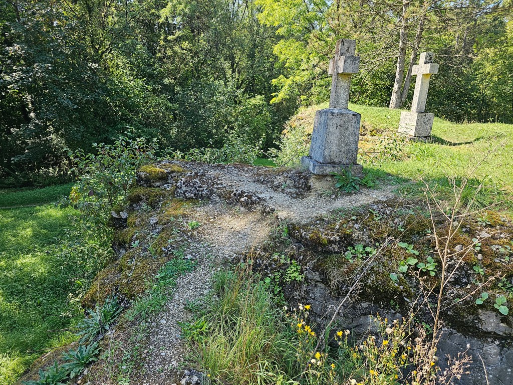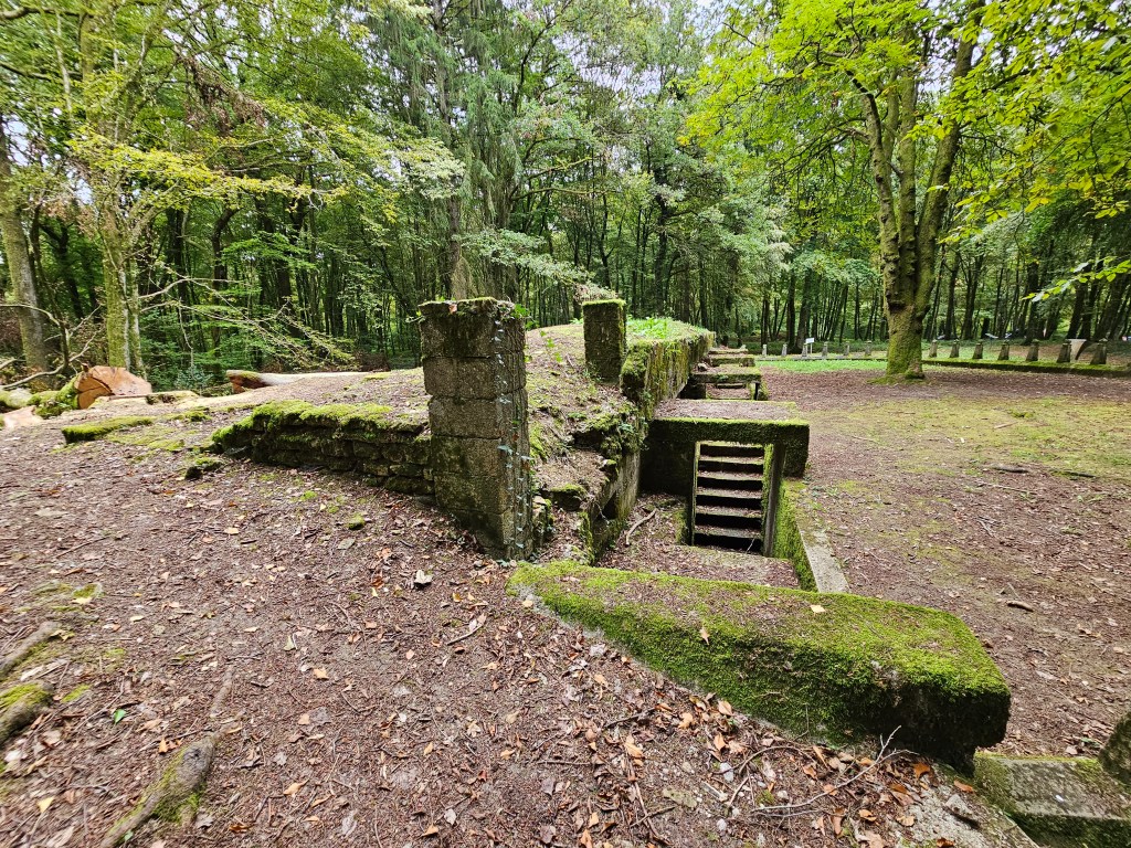 Von Saint Hilaire aus fuhren wir zum Wald von Caures, wo noch heute die Spuren des Bombardements gegen die Truppen von Colonel Driant zu sehen sind. Am 21.2.1916 beschossen die deutschen Truppen hier die französischen mit rund 80.000 Artelleriegranaten. Entlang von Granattrichtern aber auch Schützengräben, die auch nach all den Jahren noch gut zu erkennen sind, wird der Besucher, während er die Geschichte dieser Schlacht lesen kann, zur Ruine eines Unterstandes, zu einem Mahnmal, zum ersten und zweiten Grab des Colonels geführt. Der vertraute typische Duft des Laubwaldes gemischt mit den zwitschernden Vögeln, die gelegentlich vorbeifahrenden Fahrzeuge hatten wir ausgeblendet. Scheinbar unendlicher Frieden schien diesen Ort eingehüllt zu haben, Granattrichter und Schützengräben waren gefüllt mit Laub. Und doch spürten wir den vergangenen Schrecken, den dieser Boden sehen musste, der ihn zum erbeben brachte, der seine Krume aufriss und mit dem Blut unzähliger Menschen, Deutscher wie Franzosen übersättigte.