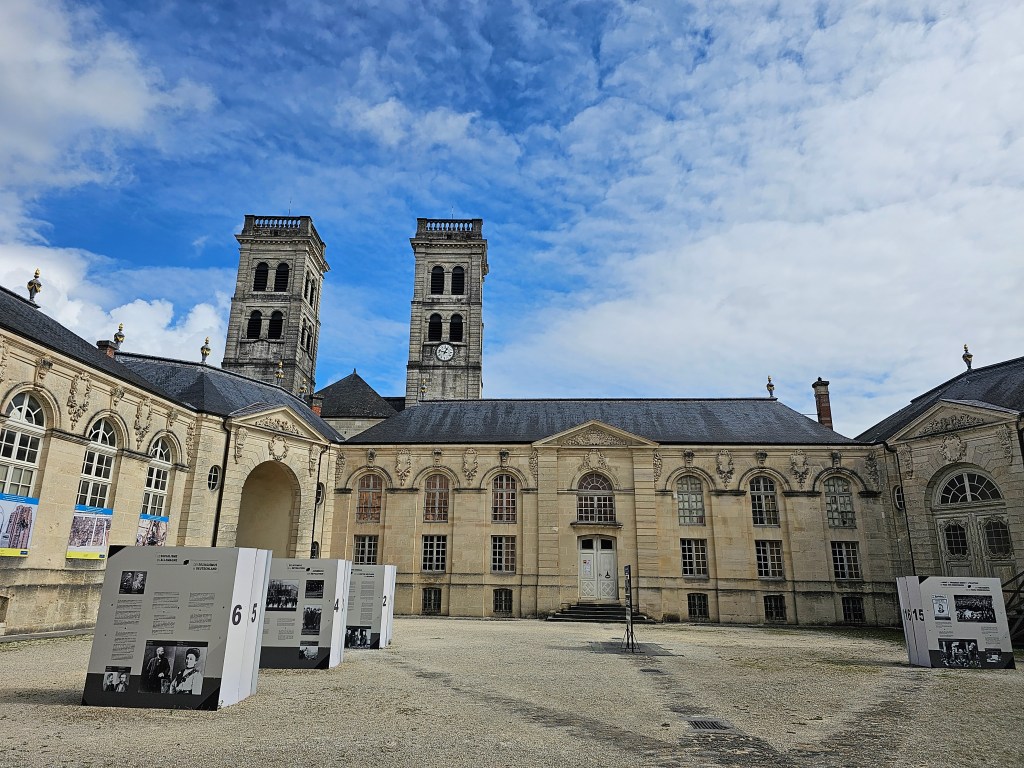 Vom Meuseufer bummelten wir an den kleinen Geschäften entlang hinauf zur Cathedrale Notre-Dame de Verdun. Schmale Gassen waren es, die uns hier herauf führten. Wie immer hieß es, die Kathedrale getrennt zu besichtigen. Einer suchte sich mit den Hunden ein schattiges Plätzchen, der andere bestaunte die riesige Kathedrale. Direkt daneben lud das Centre Mondial de la Paix, des Libertes et des Droits de l’Hommes ein, die Vergangenheit zu erkunden und präsentierte zugleich mahnend Bilder des aktuell auf dem europäischen Kontinent wütenden Krieges. Nein, die Menschen haben nicht gelernt und ich denke, sie werden auch nie wirklich lernen.