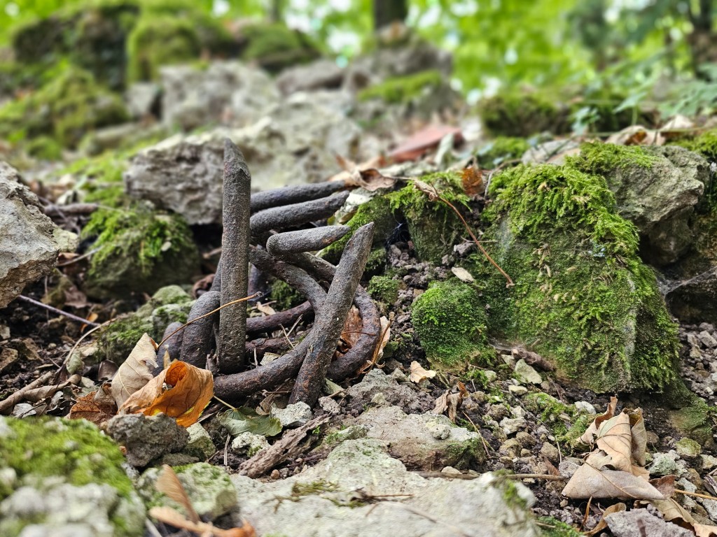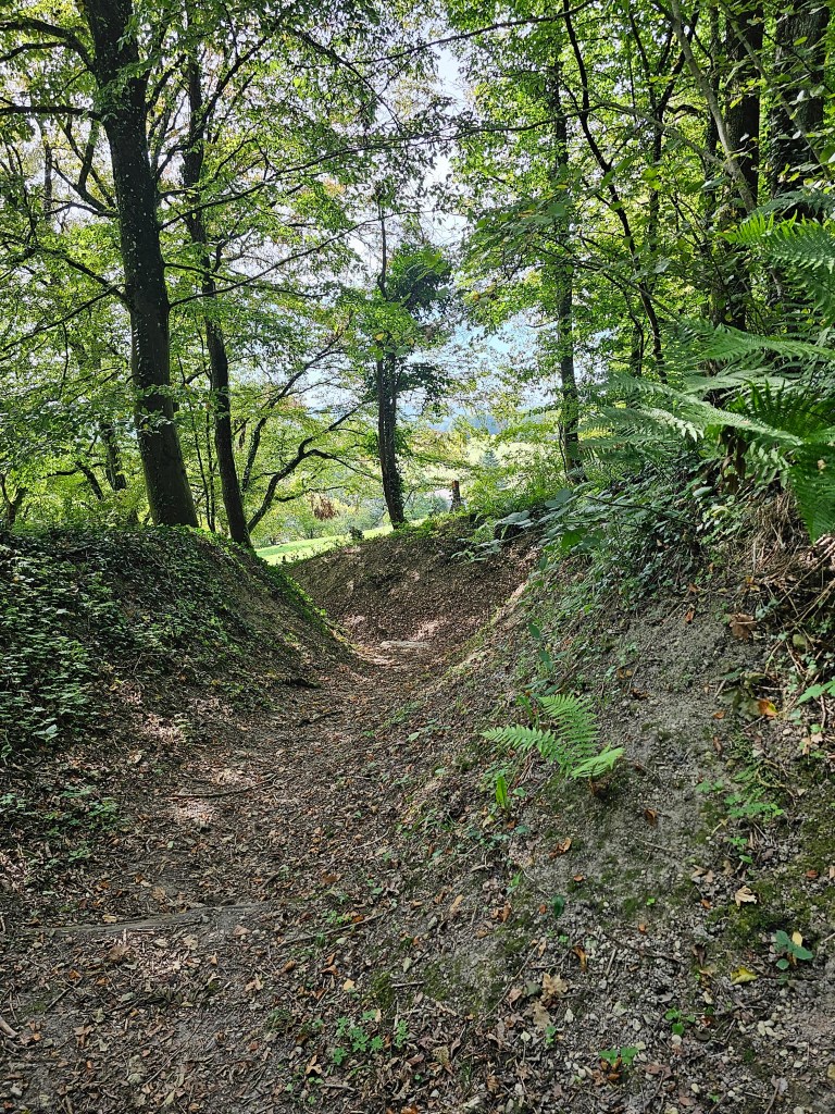 Vauquois, wo ich diesen Blogbeitrag begonnen habe (beendet habe ich ihn im Sauerland), war unser letztes Ziel. Vauquois, eine wunderschöne, herrlich ruhig gelegene Gemeinde mit gerade einmal 19 Einwohnern unterhalb des Hügels von Vauquois, wo während der Schlacht rund 14000 Menschen den Tod fanden, wo im Viertelstundentakt ein helles Glockenspiel erklingt und einem ein Lächeln auf die Lippen zaubert und wo man einen wunderschönen kleinen Wohnmobilstellplatz errichtet hat. Nachdem wir Groot abgestellt hatten, erwanderten wir uns den Hügel von Vauquois, der einem Termitenbau gleicht und viele Kilometer Stollen in sich birgt. Hier haben sich einst Deutsche und Franzosen gegenseitig gesprengt. Die Geschichte hierzu haben wir gelesen und in Dokumentationen gesehen. Den Ort selbst, der von sanftem grün bewachsen ist zu sehen ist doch noch einmal etwas ganz anderes. Unvorstellbares nimmt Form an und wird seh- und fühlbar.